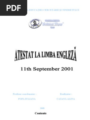 Atestat Engleza 11 Sept 2001 World Trade Center 1973 2001 United Airlines Flight 93