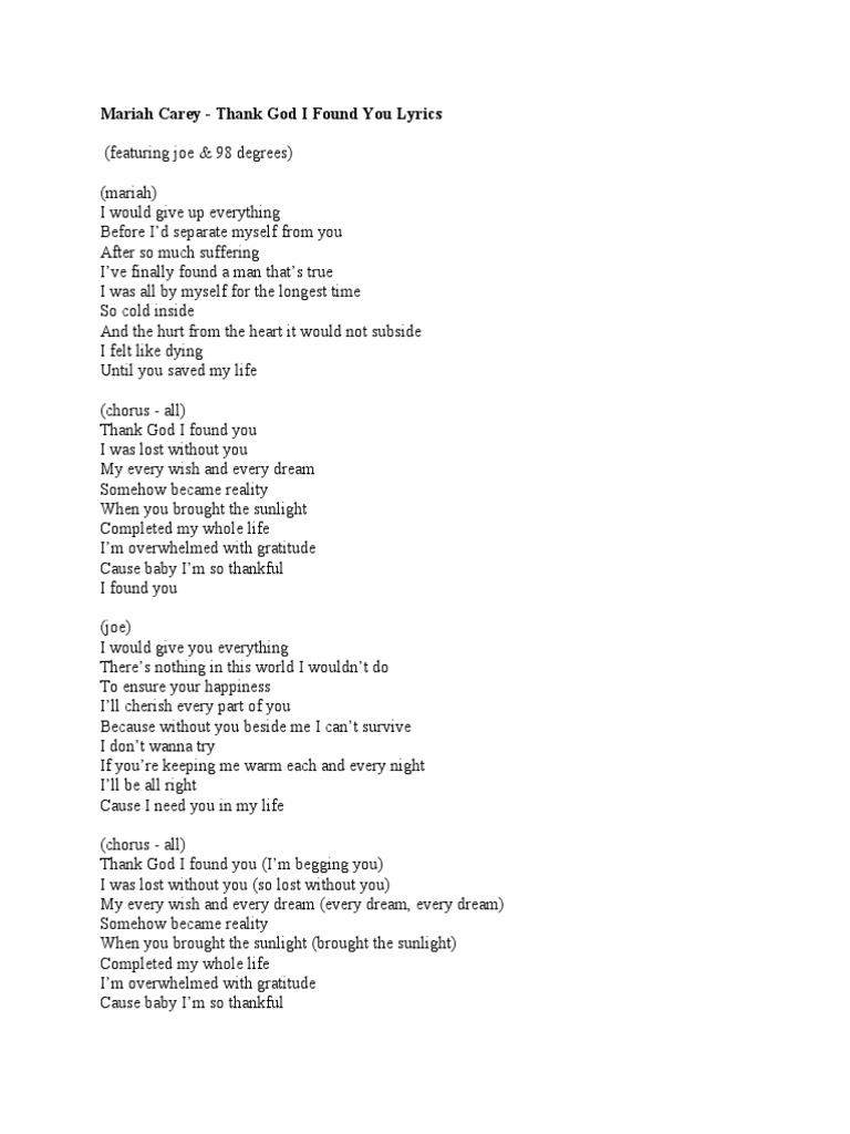 Thank God I Found You Lyrics 98 Degrees Feat Mariah Carey Lyricscode