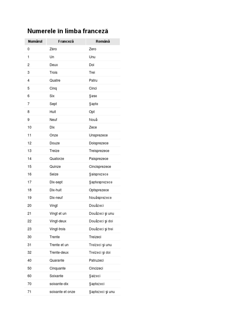 Numerele In Franceza De La 1 La 10000