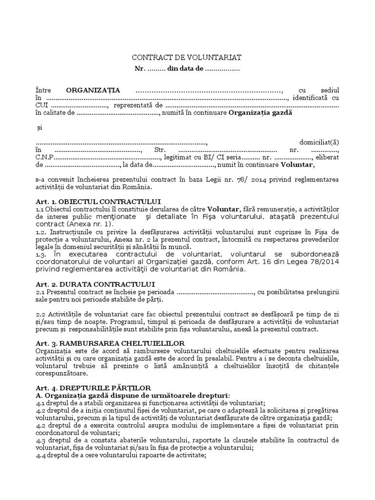 Contract De Voluntariat Model