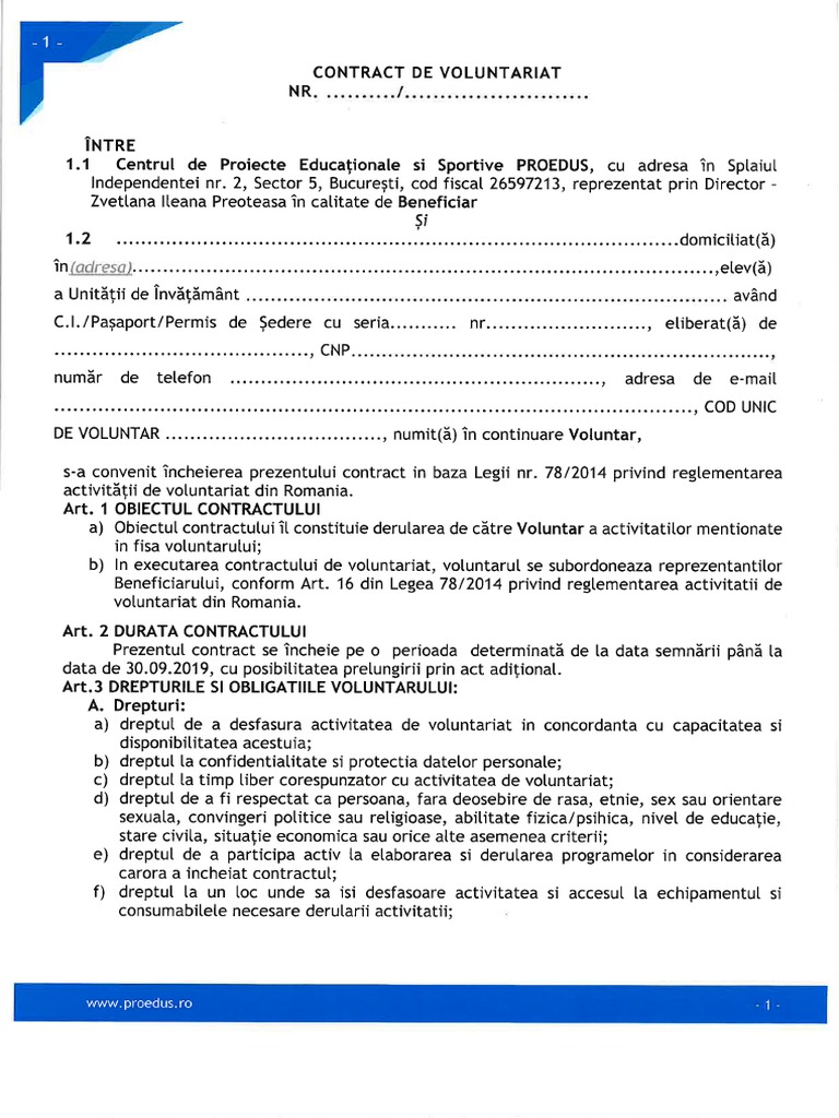 Contract De Voluntariat Model 2019