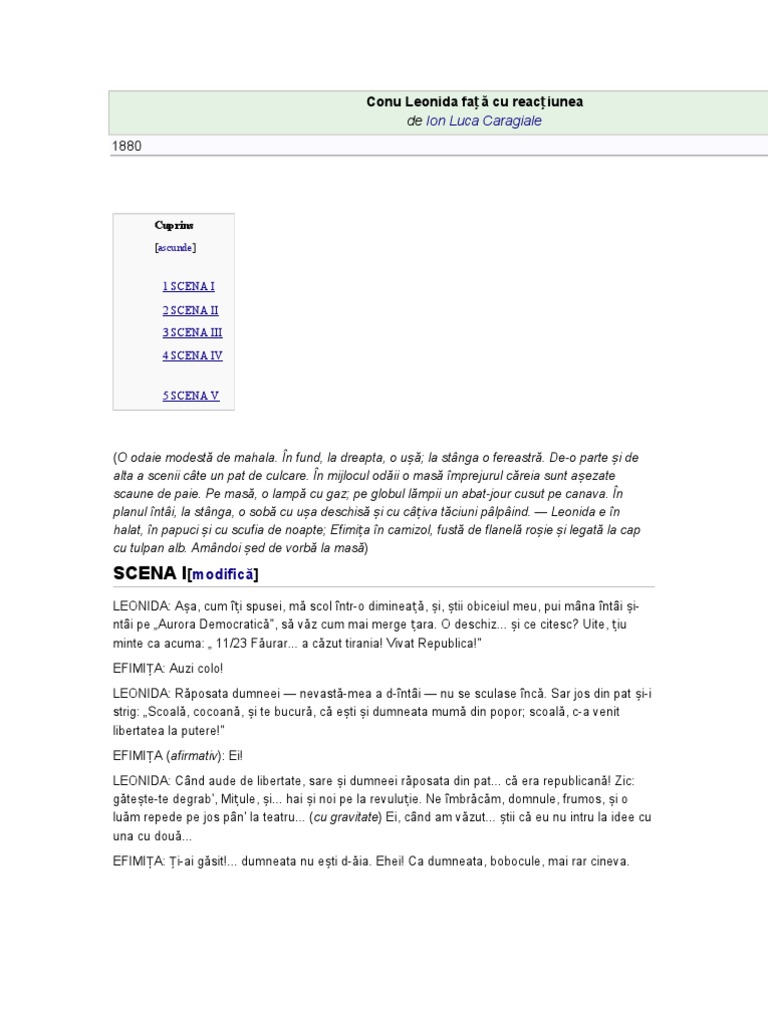 Ion Luca Caragiale Conu Leonida Fata Cu Reactiunea Pdf