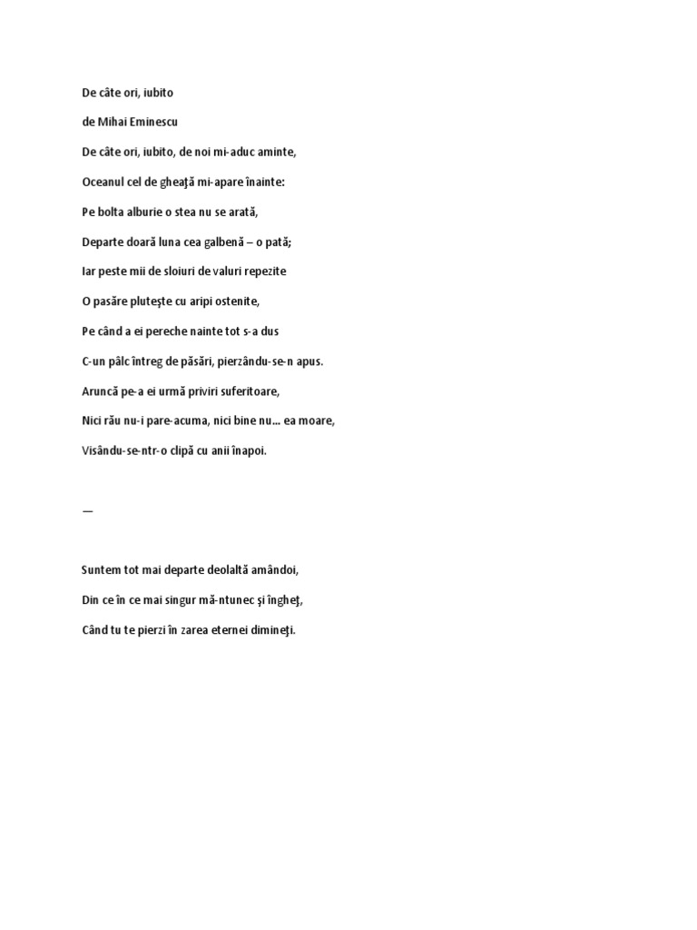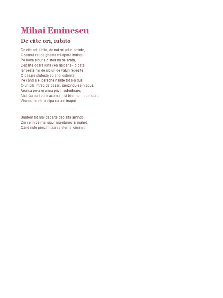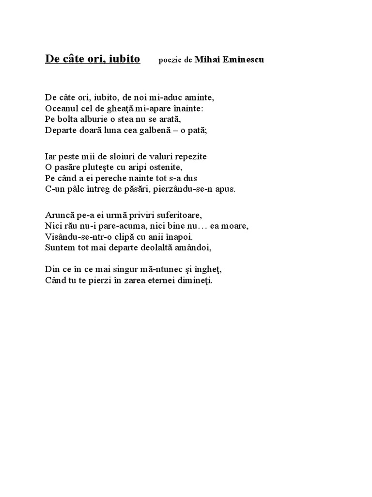 De Cate Ori Iubito Mihai Eminescu