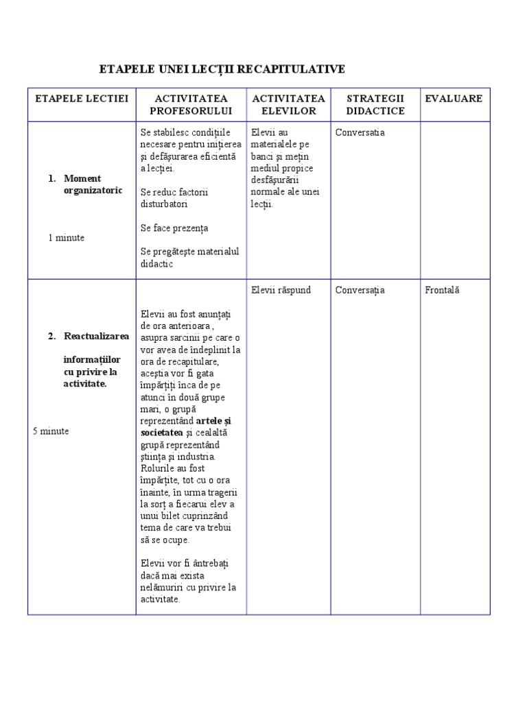 Etapele Unei Lecții Recapitulative