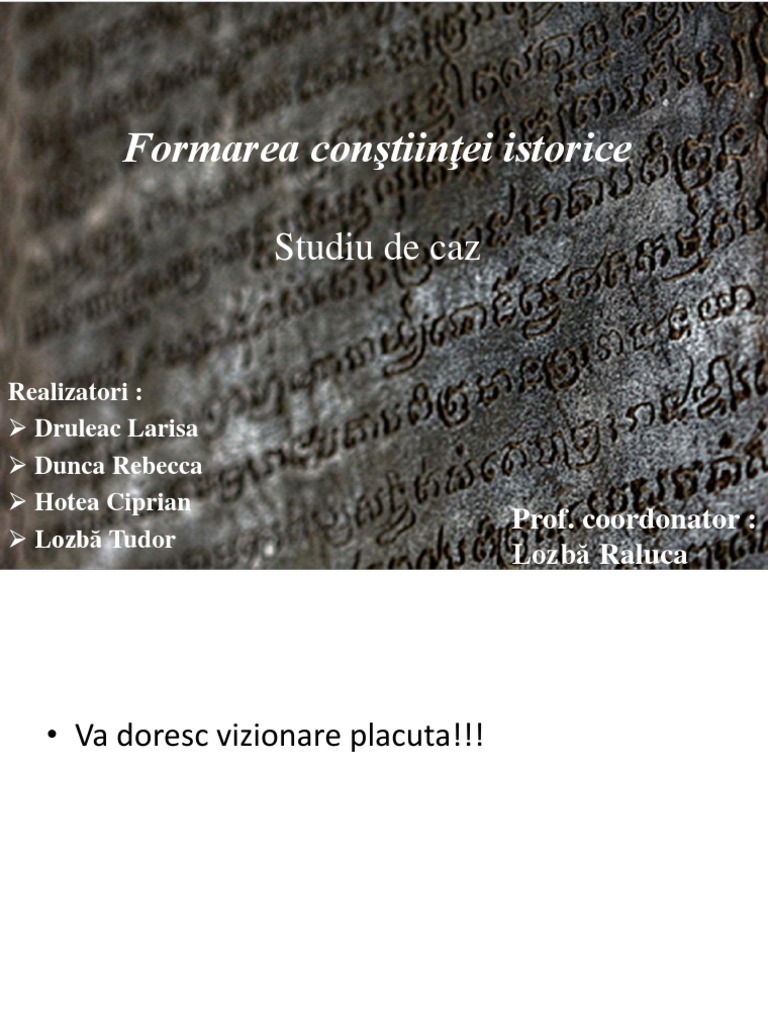 Formarea Constiintei Istorice Studiu De Caz