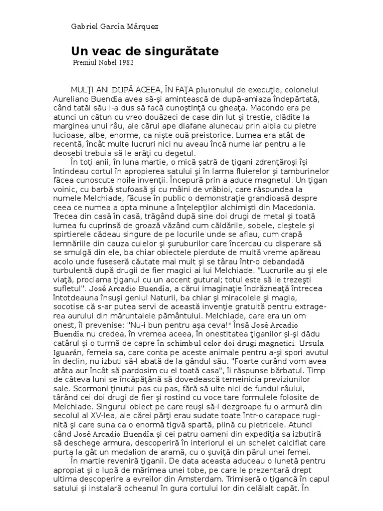 Gabriel Garcia Marquez Un Veac De Singuratate Pdf