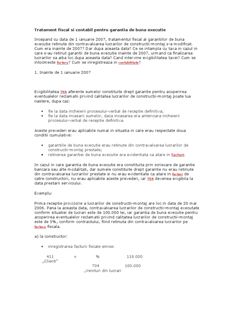 Tratament Fiscal Si Contabil Pentru Garantia De Buna Executie