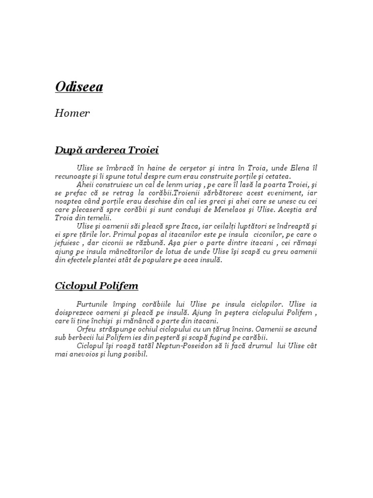 Iliada și Odiseea Rezumate Istorii Regăsite