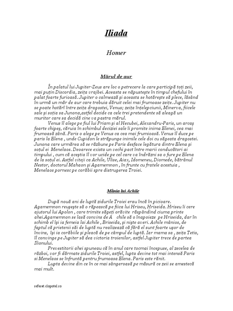 Iliada Si Odiseea Rezumat Pe Scurt Brainly