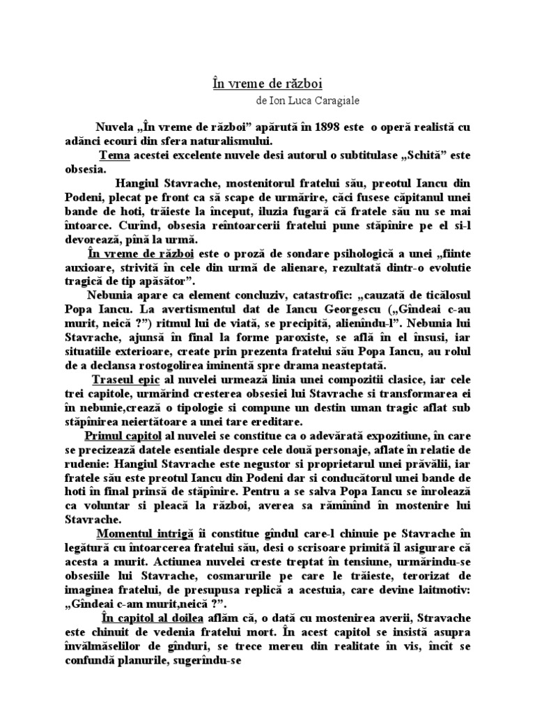In Vreme De Razboi De I L Caragiale Nuvela Psihologica D4pqw590ernp