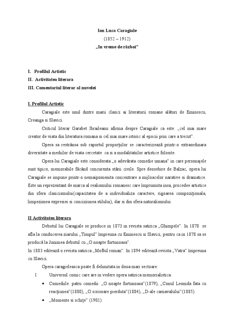Referat Ion Luca Caragiale In Vreme De Razboi Comentariu 327597 Graduo