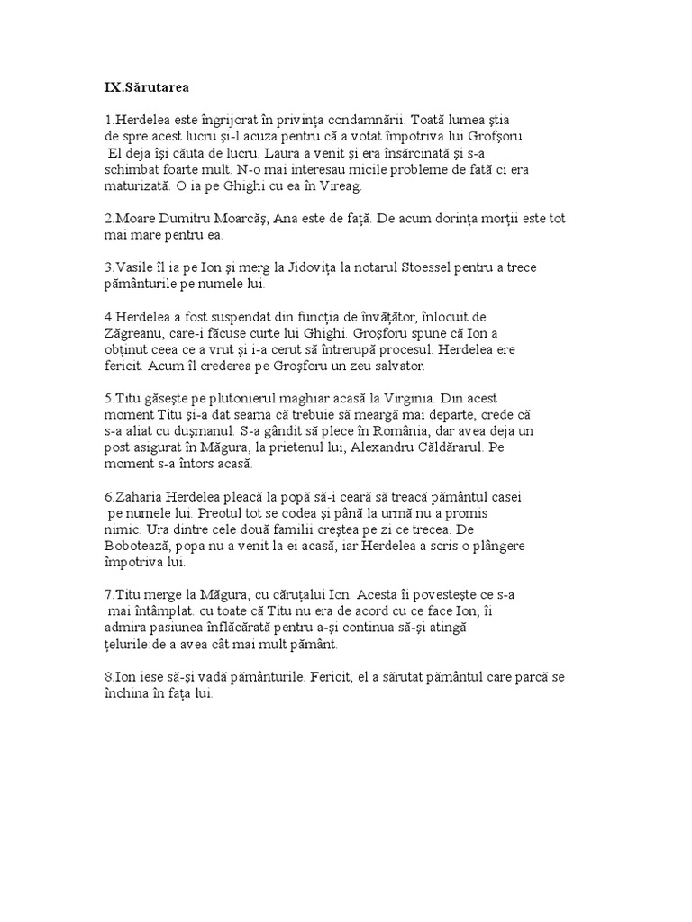Rezumatul Pe Capitole A Romanului Ion Derliviu Rebreanu