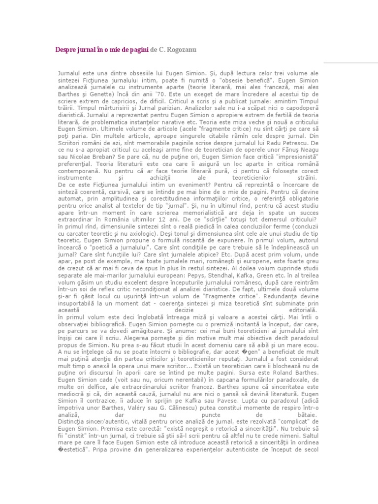 Referat Jurnalul Intim In Jurnalul Lui Mircea Eliade Romana 277267