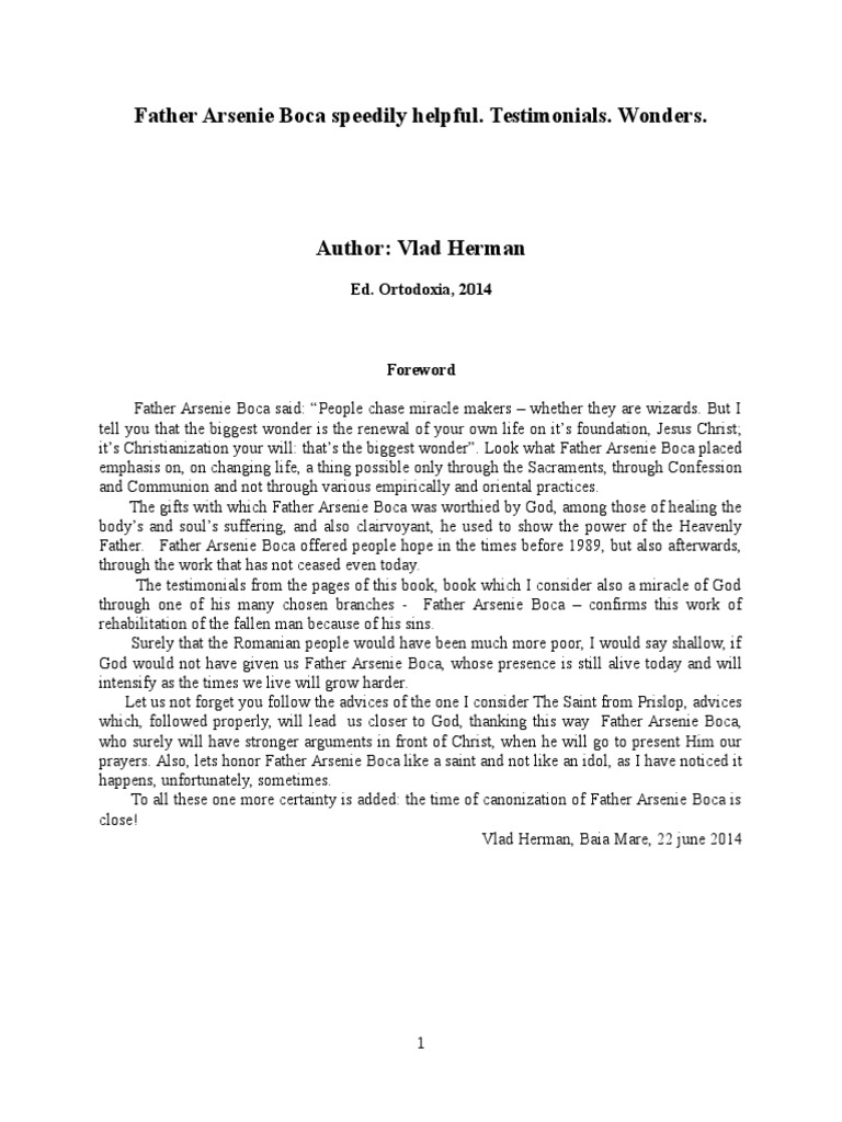 Acatist Si Paraclis Minunile In Jurul Parintelui Arsenie Boca