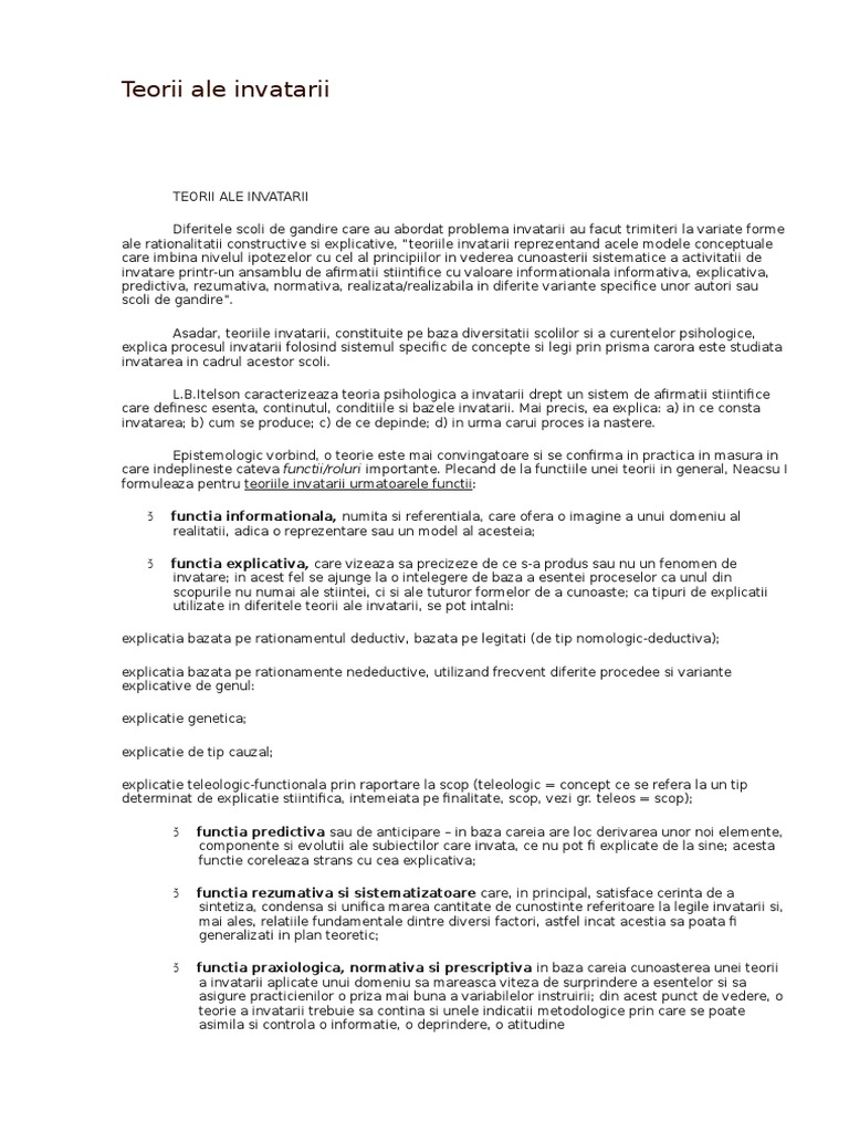 Referat Impactul Teoriilor Invatarii Asupra Practicilor Educationale Pedagogie 240051