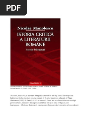 Istoria Critica A Literaturii Romane Nicolae Manolescu Pdf Carte Pdf Citești Instant