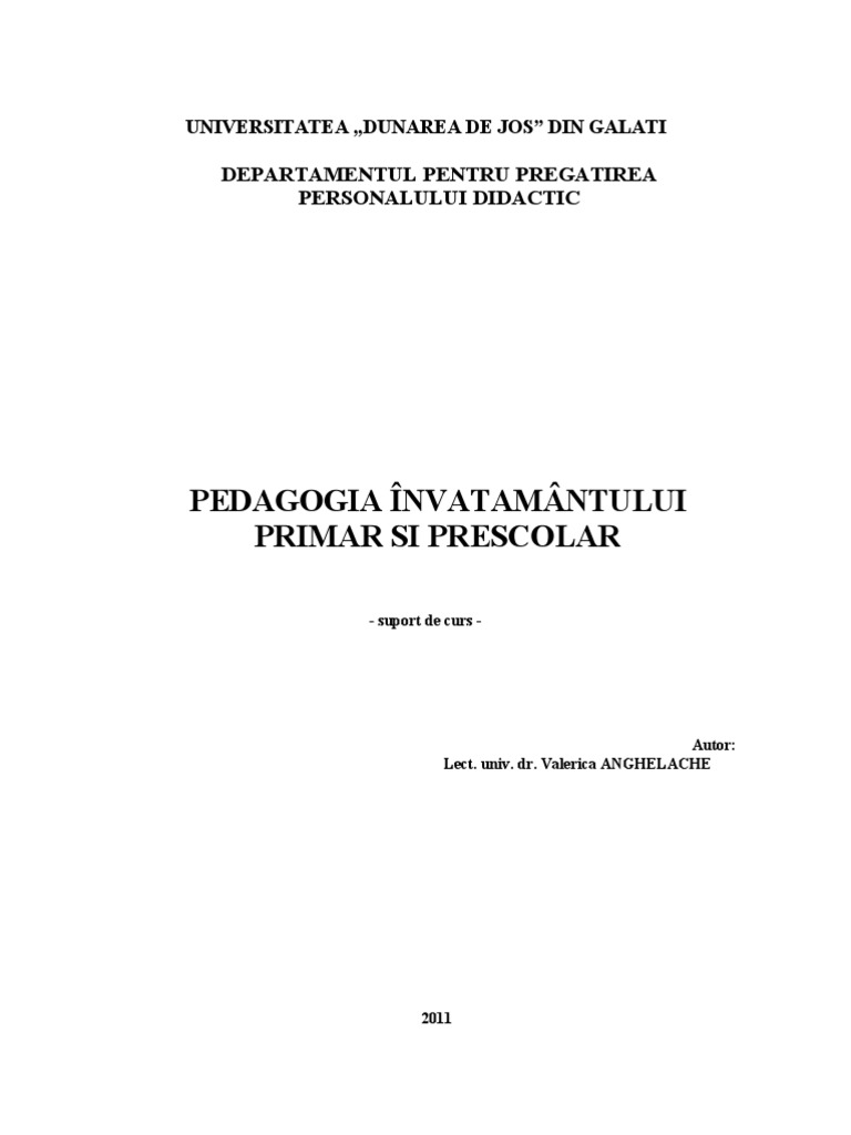 Pedagogia Invăţămantului Primar Si Prescolar Departamentul Pentru Pregătirea Personalului Didactic