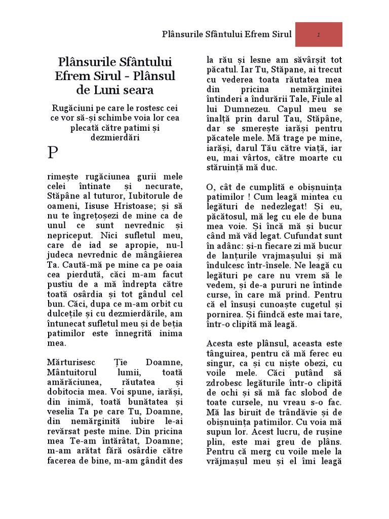 Rugaciuni Plansurile Sf Efrem Sirul Pdf Document