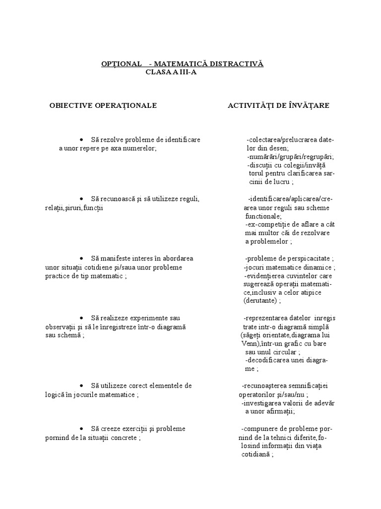Op Ional Matematică Distractivă ț Clasa A Iii A