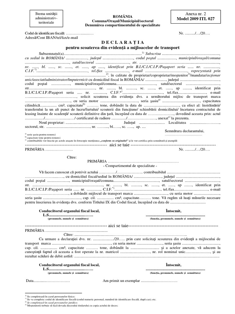 Itl 027 Declaratie Pentru Scoatere Din Evidenta Mijloace De Transport