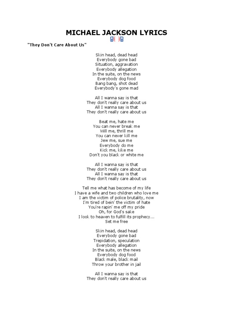 They Don T Care About Us Lyrics Michael Jackson 1