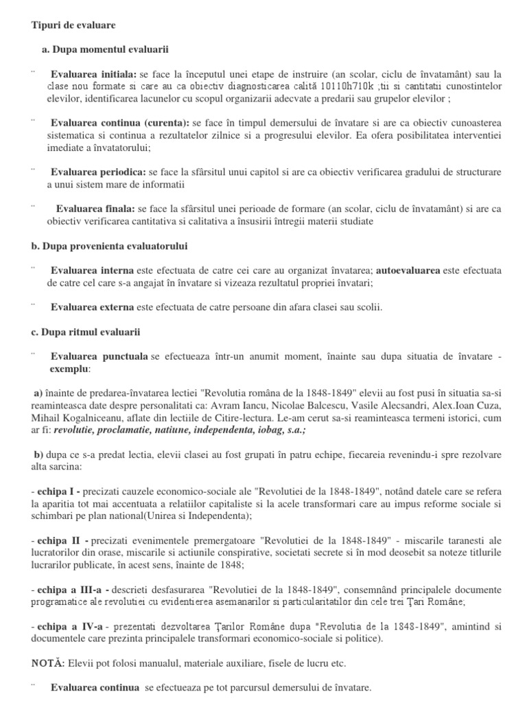 Tipuri De Evaluare școlară Note De Curs
