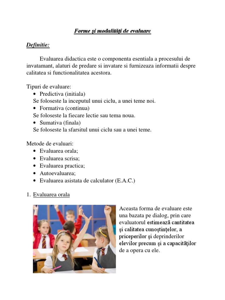 Forme Si Modalităţi De Evaluare