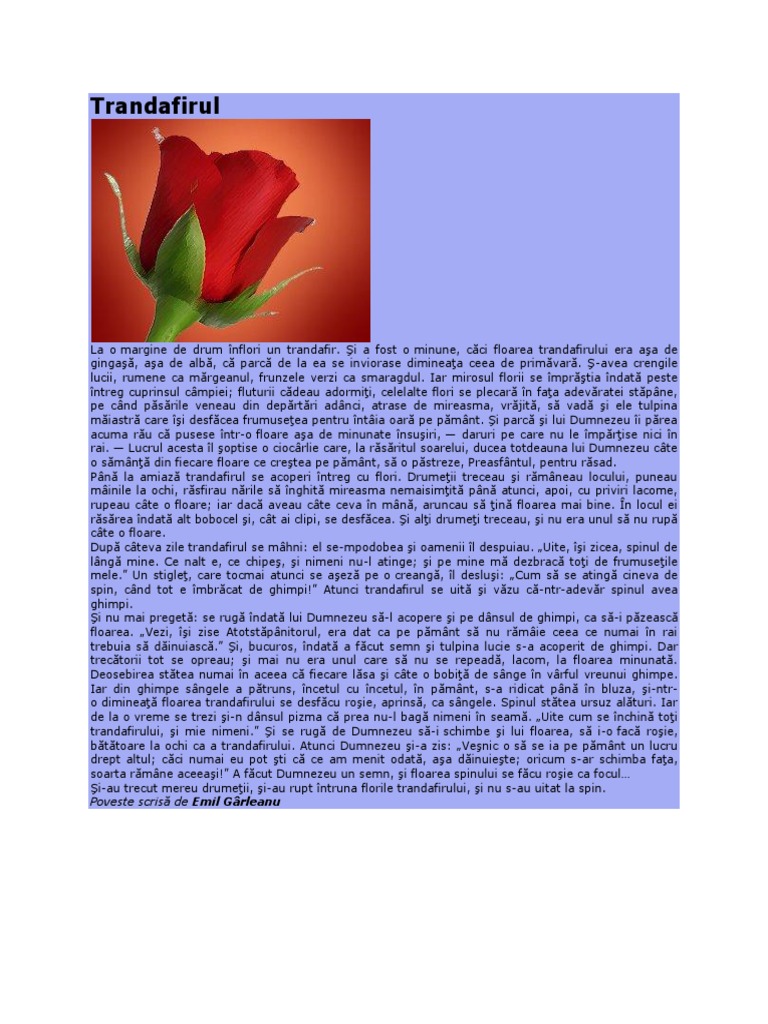 Trandafirul Poveste Scrisă De Emil Garleanu