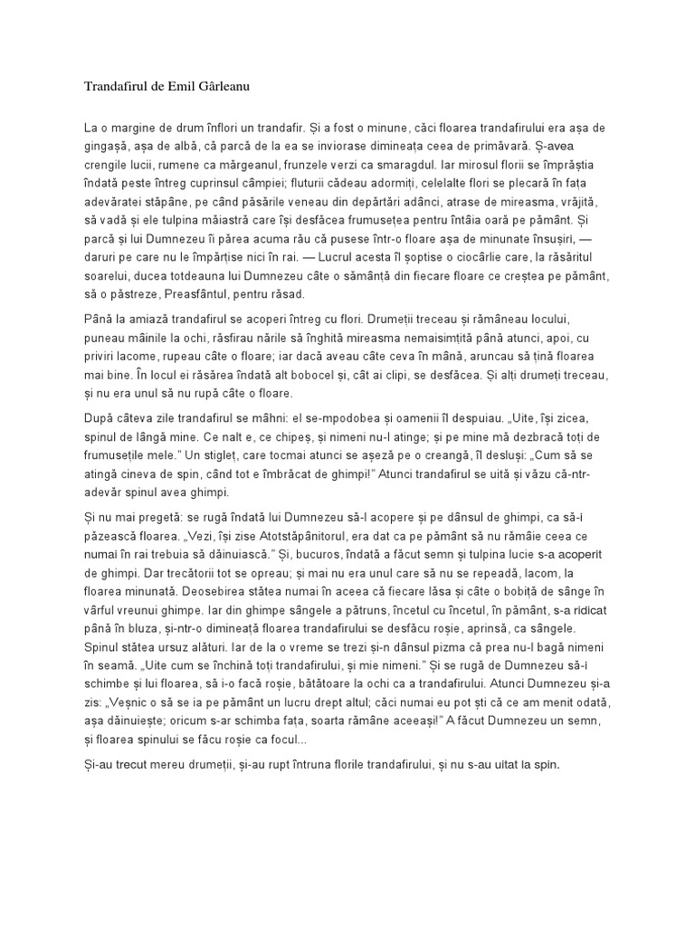 Trandafirul De Emil Garleanu Anideșcoală Ro